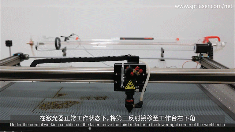 Under the normal working condition of the laser, move the third mirror to the lower right corner of the worktable.